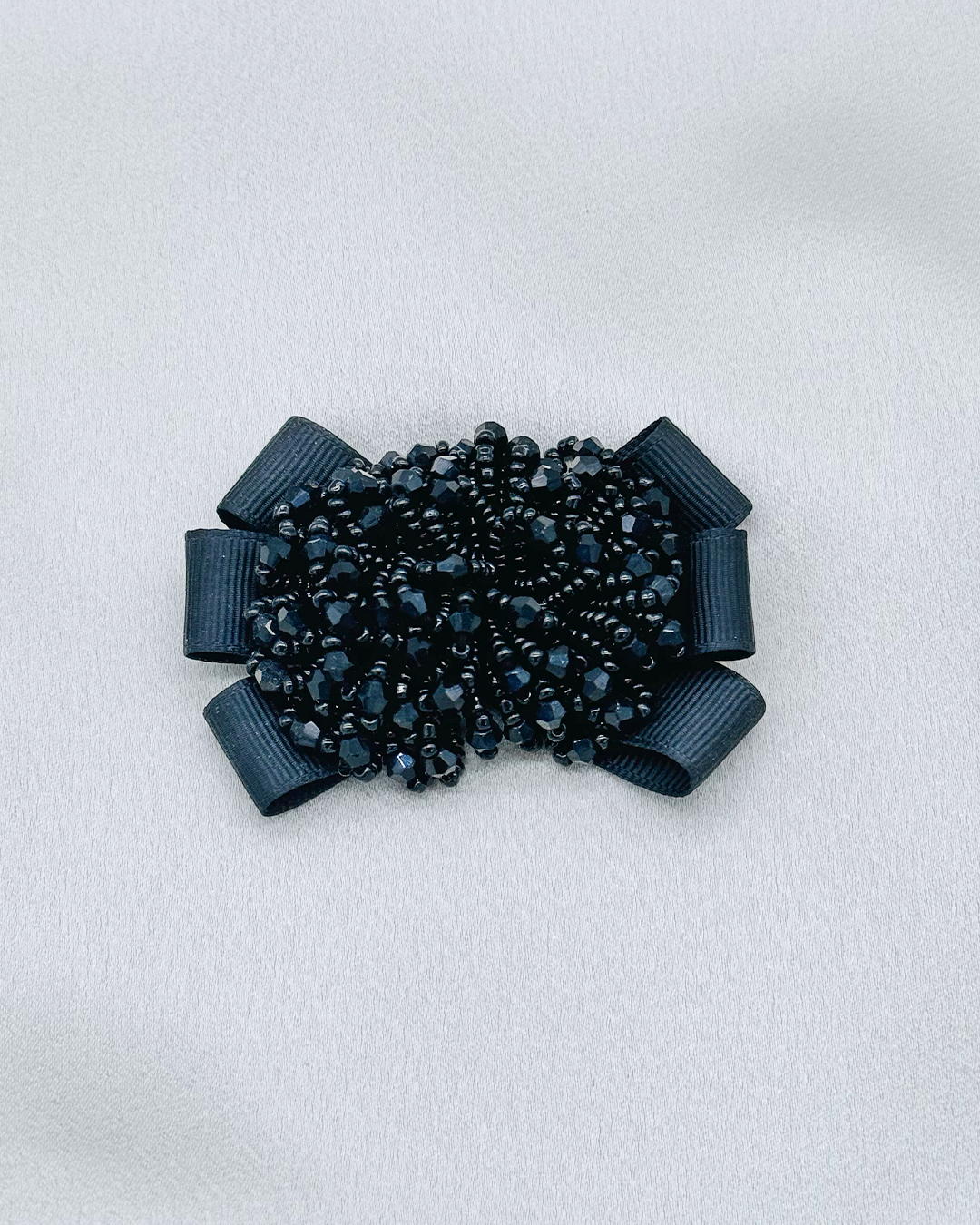 Kurdela Üzerine Kristal Ve Kum Boncuk İşlemeli Fiyonk Model Aksesuar – Lacivert