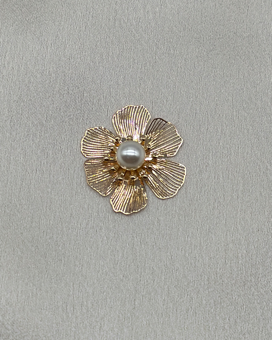 Tohum Detaylı Ortası İncili Paslanmaz Metal Broş – Gold